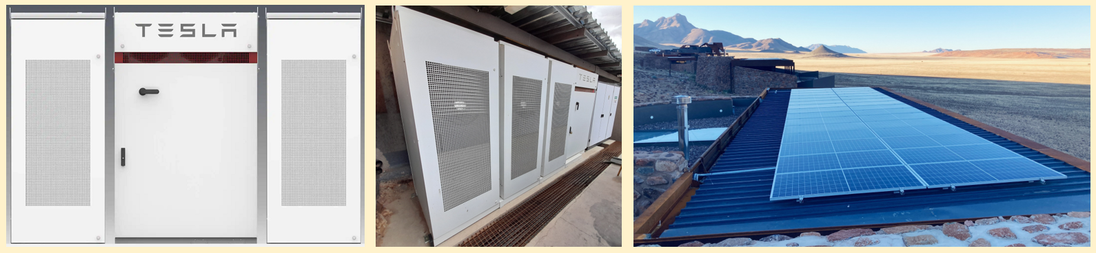 d] Two Tesla Powerpack battery systems (440kWh) are utilized to store energy and supply the grid at night.