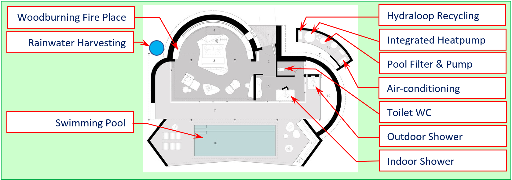 This highly effective grey water (showers & baths) recycling system was installed in each guest suite (powered by the solar panels on the roof).